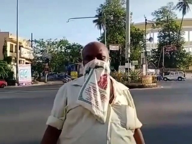 அவரை போலீசார் அழைத்து இதுதான் மாஸ்க்கா? என கேட்டதற்கு, இதுவும் மாஸ்க்தான், இதில் மோர் பாக்கெட் போட்டுள்ளேன் சுவாசிக்கும் போது மோர் வாசனை வரும். அவ்வப்போது எலுமிச்சை பழத்தையும் இந்த பையில் போட்டு முகக்கவசமாக பயன்படுத்துவேன் என வெகுளித்தனமாக பேசுகிறார்.