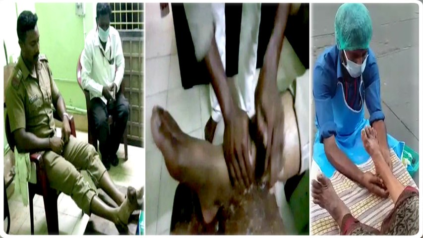 போலீசின் வலி போக்கும் வாலிபர்.. இலவசமாக பாத அழுத்த சிகிச்சை.. புதுச்சேரியில்!