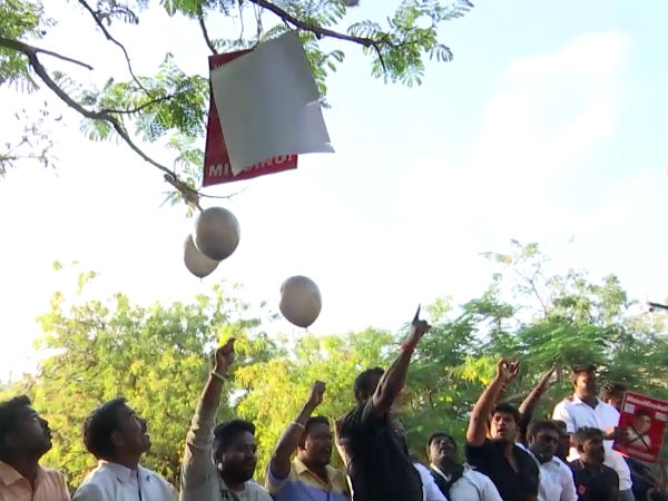 கிரண் பேடிக்கு எதிராக கருப்பு பலூன்களை பறக்க விட்ட காங்கிரஸார்