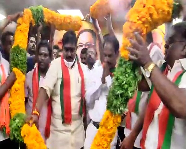 காங்கிரஸ் கட்சியில் இருந்து விலகி டில்லியில் பாரதிய ஜனதா கட்சியில் இணைந்த முன்னாள் அமைச்சர் நமச்சிவாயம் இன்று புதுச்சேரி வந்தடைந்தார். அவருக்கு அவரது ஆதரவாளர்கள் மற்றும் பாஜகவினர் மாநில எல்லையில் வரவேற்பு அளித்தனர். தொடர்ந்து பரதிய ஜனதா கட்சியின் மாநில தலைமை அலுவலகத்திற்கு வந்த நமச்சிவாயத்தை நிர்வாகிகள் மாலை அணிவித்து வரவேற்றனர்.