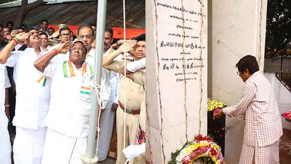 இதனைத்தொடர்ந்து அங்குள்ள நினைவிடத்தில் முதல்வர் நாராயணசாமி, அமைச்சர்கள் நமச்சிவாயம், கந்தசாமி, சபாநாயகர் சிவக்கொழுந்து, மாவட்ட ஆட்சியர் அருண் உள்ளிட்டோர் மலர்தூவி மரியாதை செலுத்தினர். இந்நிகழ்ச்சியில் தியாகிகள் உள்பட ஏராளமானோர் கலந்துகொண்டனர்.