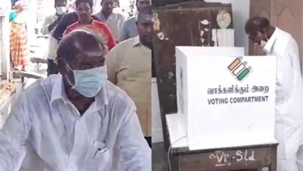 நல்ல நேரம் பார்த்து.. வாக்குச்சாவடியில் 5 நிமிடம் காத்திருந்து.. வாக்கினை பதிவு செய்த ரங்கசாமி!
