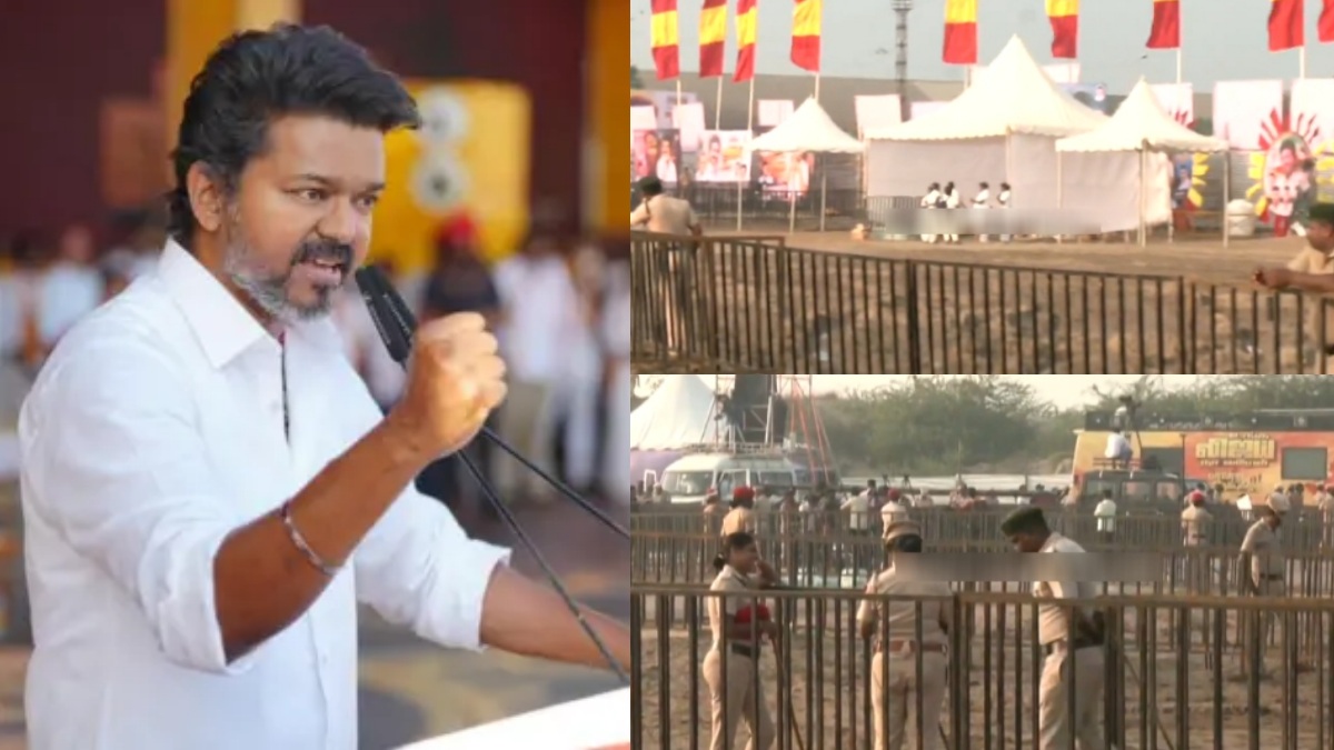 கரூர் துயர சம்பவத்திற்கு பிறகு, தமிழக வெற்றிக் கழகத் தலைவர் விஜய் இன்று பொதுக் கூட்டம் நடத்துகிறார். முதலில் ரோடு ஷோ நடத்த அனுமதி கேட்ட நிலையில் அதற்கு அந்த மாநில அரசு மறுக்கவே, பொதுக் கூட்டம் நடத்தப்படுகிறது.