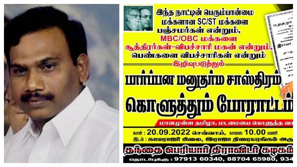 சூத்திரன் பேச்சு- ஆ.ராசாவுக்கு ஆதரவாக வெடித்தது போராட்டம்- புதுச்சேரியில் நாளை மனுதர்மம் எரிப்பு!