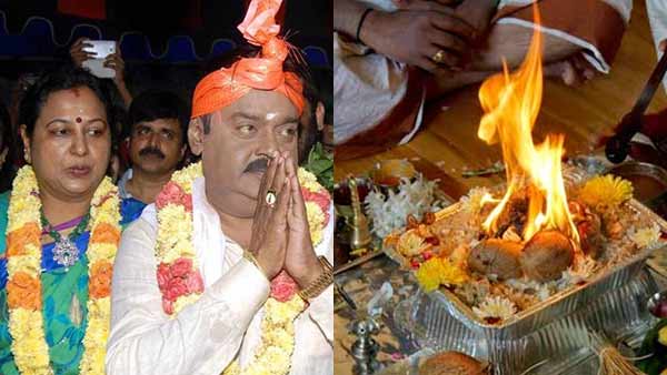 விஜயகாந்த் உடல்நலத்துடன் இருப்பதற்காகவும் இழந்த செல்வாக்கை மீண்டும் பெற வேண்டும் என்பதற்காகவும் திலஹோமம் நடத்தப்படுவதாக தெரிவிக்கப்படுகிறது.