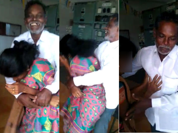 ஏதோ வேலையில் ரொம்ப அக்கறை எல்லாம் இல்லை.. எல்லாம் அந்த பெண்ணிடம் சில்மிஷத்தில் ஈடுபடத்தான். அந்த பெண்ணின் அருகில் சென்று முதலில் இடுப்பை பிடித்து கொள்கிறார் நாகராஜ், அதற்கு பிறகு கட்டிப்பிடிக்கிறார். இதை இன்னொரு ஊழியரை வீடியோ எடுக்க சொல்கிறார். அந்த ஊழியரும் இந்த கண்றாவியை செல்போனில் படம் பிடிக்கிறார்.