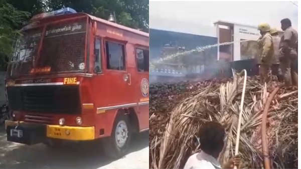 மாரியப்பன் மண்டியில் பயங்கர தீ.. அத்தனை தேங்காய்களும் கருகின.. 2 மணி நேரம் போராடி அணைப்பு