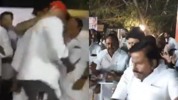 அப்போது அமைச்சர் உதயநிதி ஸ்டாலினுடன் சேர்ந்து நின்று ஒரு புகைப்படம் எடுத்துக் கொள்ள விரும்பிய தொண்டர் ஒருவர் உதயநிதி பக்கத்தில் நிற்க முயன்றிருக்கிறார். இதை அருகில் இருந்த பார்த்த அமைச்சர் கே.என்.நேரு, அந்த தொண்டரை மிக ஆக்ரோஷமாக பிடித்து தள்ளி மேடையிலிருந்து கீழே இறங்கச் சொல்லி தனது கோபத்தை வெளிப்படுத்தினார். இதனிடையே பிரஸ் இருக்காங்க எனக் கூறி அமைச்சர் கே.என்.நேருவை தோளில் தொட்டு சமாதானம் செய்திருக்கிறார் கள்ளக்குறிச்சி எம்.பி. கவுதம சிகாமணி.