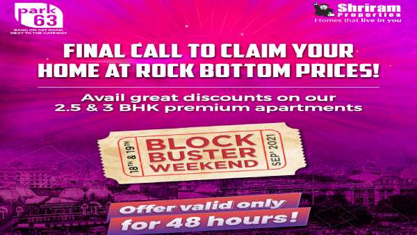 சென்னை: சென்னையில் பல்வேறு வசதிகளை கொண்ட தரமான அபார்ட்மெண்டுகளை விற்பனை செய்யும் ஸ்ரீராம் ப்ராபர்ட்டிஸ் நிறுவனம் தற்போது தனது பார்க் 63 (Park 63) அபார்ட்மெண்டிற்கு "பிளாக்பஸ்டர் வீக்எண்ட்" ஆஃபரை அறிமுகப்படுத்தி உள்ளது. "பிளாக்பஸ்டர் வீக்எண்ட்" ஆஃபர் மூலம் சொந்தமாக வீடு வாங்கும் உங்களின் கனவு நிறைவேற போகிறது.