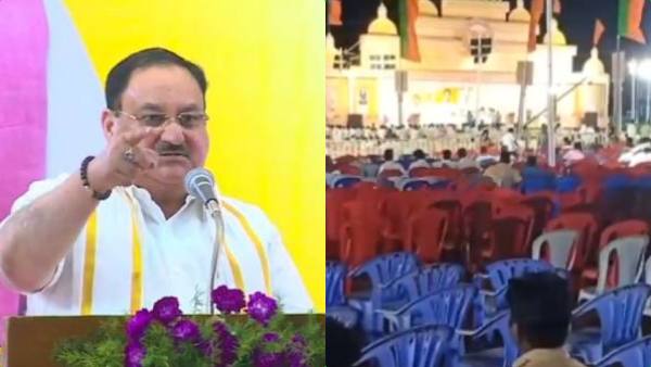சிவகங்கை: காரைக்குடியில் நடைபெற்ற பாஜக தேசிய தலைவர் ஜே.பி.நட்டா கலந்துகொண்ட பொதுக்கூட்டத்தில் அவர் உரையாற்றிக் கொண்டிருந்தபோது ஏராளமான சேர்கள் காலியாக கிடந்த கேமராக்களின் கண்களில் பதிவாகி இருக்கிறது.