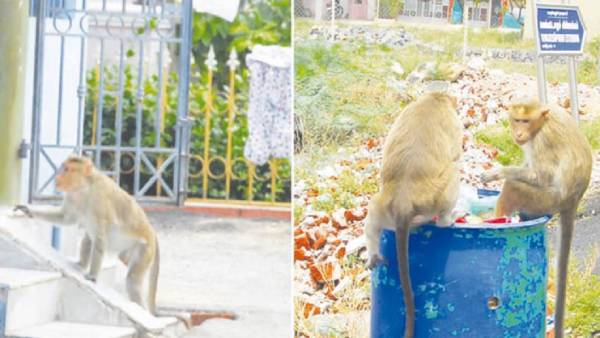 காரைக்குடி அருகே மாலையிட்டான்பட்டி என்ற பகுதி உள்ளது.. இங்கு ஏராளமான குரங்குகள் வந்து போய்க் கொண்டிருக்கின்றன..