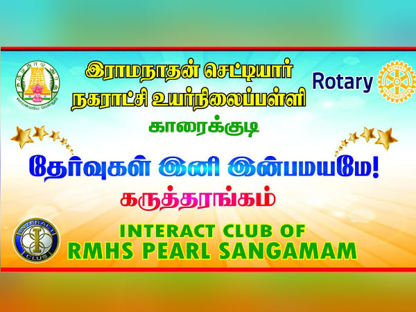 காரைக்குடி: சிவகங்கை மாவட்டம், காரைக்குடி இராமநாதன் செட்டியார் நகராட்சி உயர்நிலைப்பள்ளியில் இன்று ( 08.06.2019 ) இராமநாதன் செட்டியார் நகராட்சி உயர்நிலைப்பள்ளி பியர்ல் சங்கமம் இன்டராக்ட் சார்பில் "தேர்வுகள் இனி இன்பமயமே" என்ற தலைப்பில் கருத்தரங்கம் நடைபெற்றது.