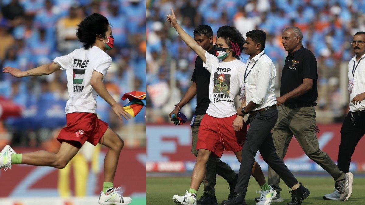 உலகக் கோப்பை கிரிக்கெட் பைனல்.. திடீரென மைதானத்துக்குள் அத்துமீறி குதித்த பாலஸ்தீன ஆதரவாளர் கைது!