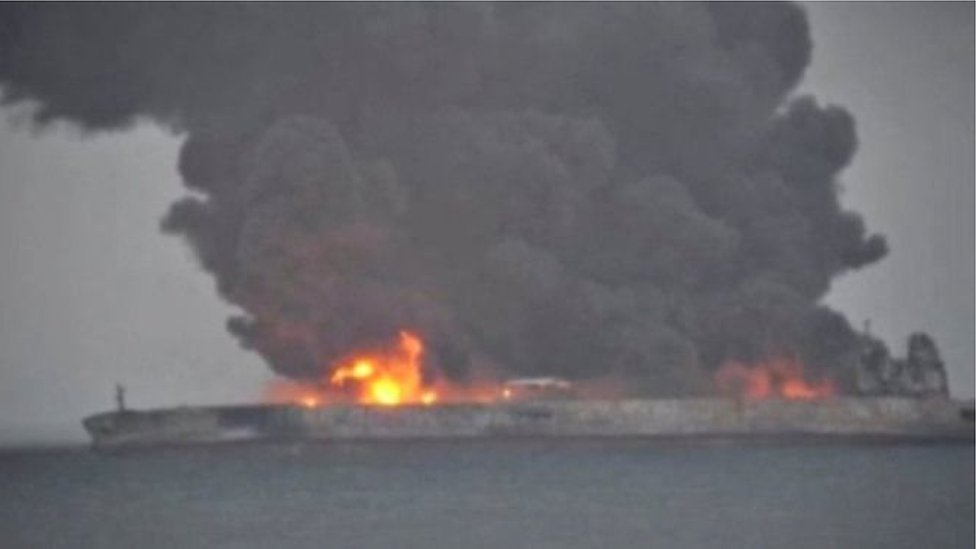 1,.36,000 டன் அளவிலான இரான் நாட்டு எண்ணெயை சுமந்து வந்த சான்சி கப்பல் ஷாங்காயிலிருந்து 160 நாட்டிகல் மைல் தூரத்தில் சீன சரக்கு கப்பலுடன் மோதி விபத்துக்குள்ளானது.