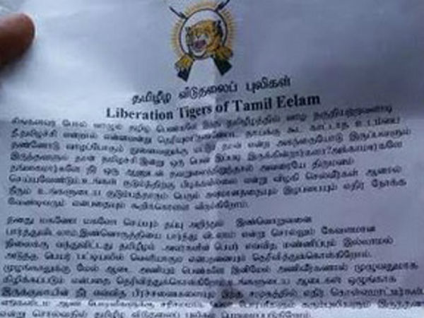 இந்த துண்டு பிரசுரத்தில், தமிழீழ சகோதர சகோதரிகளே நீங்கள் தமிழீழ விடுதலைப் புலிகளின் புலனாய்வுத் துறையால் கண்காணிக்கப்பட்டுக் கொண்டிருக்கின்றனர். மக்களோடு மக்களாக இருக்கும் தமிழீழ விடுதலைப் புலிகளை காட்டிக் கொடுப்போர் தங்களது குடும்பத்தினரையும் யோசித்து கொள்ளுங்கள் என எச்சரிக்கப்பட்டுள்ளது.