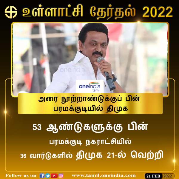 53 ஆண்டுகளுக்கு பின் பரமக்குடி நகராட்சியில் 36 வார்டுகளில் திமுக 21-ல் வெற்றி