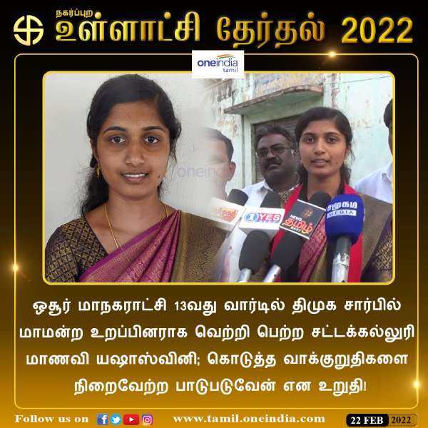 ஒசூர் மாநகராட்சி 13வது வார்டில் திமுக சார்பில் மாமன்ற உறப்பினராக வெற்றி பெற்ற சட்டக்கல்லுரி மாணவி யஷாஸ்வினி; கொடுத்த வாக்குறுதிகளை நிறைவேற்ற பாடுபடுவேன் என உறுதி!
