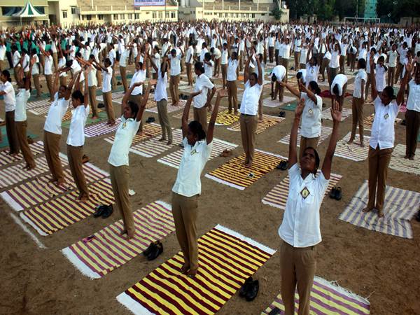 அந்தவகையில் சென்னை எழும்பூரில் உள்ள ராஜரத்தினம் விளையாட்டு மைதானத்தில், போலீசார் பங்கேற்ற யோகா பயிற்சி நடைபெற்றது. இதில், 1000 போலீசார் கலந்துகொண்டு, பலவித ஆசனங்களை செய்தனர்.