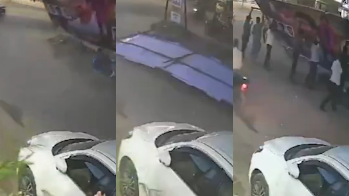 அப்போது எதிர்பாராத விதமாக திடீரென்று பேனர் மொத்தமாக சரிந்து நடந்து சென்ற சிறுவன் மீது விழுந்தது. இதனால் சிறுவன் பேனருக்கு அடியில் சிக்கினார். பேனர் சிறுவனை அமுக்கியது. இதனை அங்கிருந்தவர்கள் பார்த்துவிட்டு ‛‛ஏய்.. தம்பி.. தம்பி.. '' என்று என்று அதிர்ச்சியுடன் ஓடிவந்து சரிந்த பேனரை அகற்றி சிறுவனை மீட்டினர். அதிர்ஷ்டவசமாக சிறுவனுக்கு லேசான காயம் மட்டுமே ஏற்பட்டது. பெரிய அளவில் காயம் ஏற்படவில்லை. அதேபோல் டூவீலர் ஒன்றும் சேதமானது.