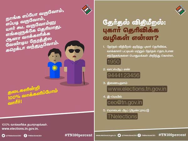 தமிழக சட்டசபை தேர்தலில் 100 சதவீத வாக்குப்பதிவு என்ற நோக்கத்தை முன்வைத்து சமூக வலைதளங்களில் விழிப்புணர்வு பிரசாரம் மேற்கொள்ளப்பட்டு வருகிறது.