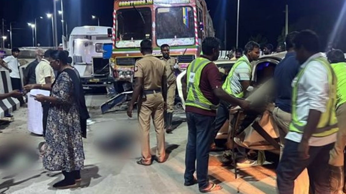 சிதம்பரம்: சென்னையில் இருந்து மயிலாடுதுறை மாவட்டம் குத்தாலம் நோக்கி சென்ற கார், கடலூர் மாவட்டம் சிதம்பரம் அருகே பு.முட்லூர் புறவழிச் சாலையில் சென்ற போது, எதிரே வந்த லாரியுடன் நேருக்கு நேர் மோதியது. புதன்கிழமை நள்ளிரவு நடந்த இந்த விபத்தில் ஒரே குடும்பத்தை சேர்ந்த 5 பேர் சம்பவ இடத்திலேயே உயிரிழந்தனர். விபத்து நடந்த உடனே லாரி ஓட்டுநரும், கிளீனரும் தப்பி ஓடிவிட்டார்கள்.