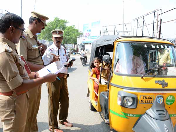 இதைத் தொடர்ந்து, வட்டாரப் போக்குவரத்து அலுவலர்கள், போக்குவரத்து போலீஸாருடன் இணைந்து திங்கட்கிழமையன்று சென்னை மாநகரம் முழுவதும் அதிரடி சோதனையில் ஈடுபட்டனர்.