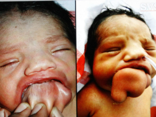 இந்த கட்டி 50 கிராம் எடை கொண்டது. கட்டியை முழுமையாக அகற்றிவிட்டாலும், குழந்தையின் நாக்கு மற்றும் தாடையில் பிளவு உள்ளது.