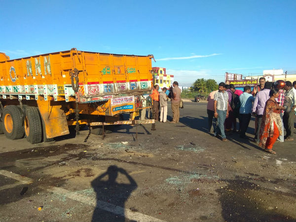 இதனால் நின்றிருந்த லாரி மீது கார் பயங்கரமாக மோதியது. லாரியில் 20 டன் எடை கொண்ட இரும்பு இருந்ததால் லாரி ஒரு இன்ச் கூட நகரவில்லை. எனினும் கார் சுக்குநூறாக நொறுங்கியது.