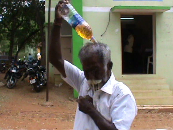 அப்போது அந்த முதியவர் தனது நிலத்திற்கு பட்டா மாறுதல் செய்து தராமல் அதிகாரிகள் அலையவைத்து பணம் கேட்பதாக முறையிட்டார். இல்லை தான் தீக்குளித்து தற்கொலை செய்துகொள்ள போவதாகவும் தெரிவித்தார்.