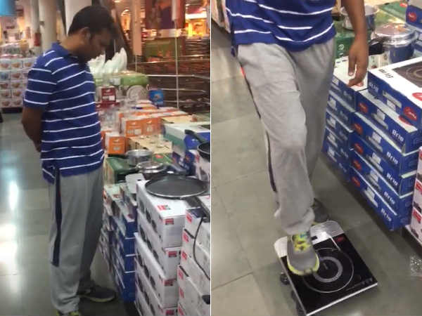 அதுபோல் இந்த கடையில் ஒரு இளைஞர் இன்டக்ஷன் அடுப்பில் வெயிட் பார்க்க முயன்று அது வெயிட் மிஷின் அல்ல என்று சுதாரித்துக் கொண்டு பதறியடிப்பதை பாருங்கள். இதோ உங்களுக்காக அந்த வீடியோ.