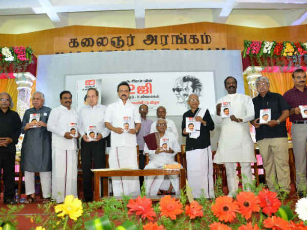 அந்த புத்தக வெளியீட்டு விழா இன்று மாலை அண்ணா அறிவாலயத்தில் நடைபெற்றது. இதில் திமுக செயல்தலைவர் மு.க.ஸ்டாலின், திமுக பொதுச் செயலாளர் க.அன்பழகன், திராவிடர் கழகத் தலைவர் கி.வீரமணி, கவிஞர் வைரமுத்து, சுப வீரபாண்டியன், இந்து குழுத்தின் தலைவர் ராம் உள்ளிட்டோர் கலந்து கொண்டனர்.
