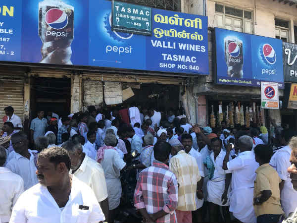 நீண்ட வரிசையில் காத்திருந்த அவர்கள் முன்னால் இருந்தவர்கள் ஒன்றுக்கு மேற்பட்ட பல பாட்டில்களை வாங்கியதால் சரக்கு தீர்ந்துவிடும் என்ற அச்சத்தில் காத்திருந்தனர். ஒரு கட்டத்தில் பொறுக்க முடியாமல் ஒருவரை ஒருவர் சண்டையிட்டு கொண்டு முண்டியடித்தனர்.