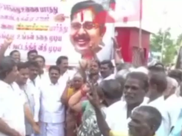 தினகரன் போட்டோவுக்கு நாமம்... சிரிப்பாய் சிரித்த அதிமுகவினர்... - வீடியோ