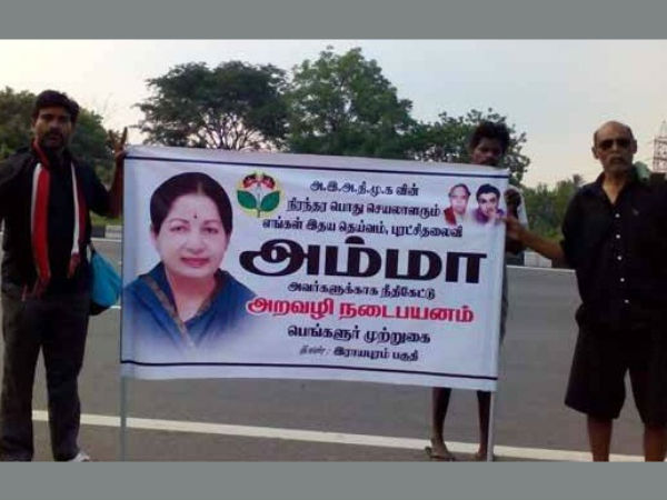 மற்ற தொண்டர்களைப் போல வன்முறையில் ஈடுபடாமல், பஸ்களை எரிக்காமல், கடைகளை மூடச் சொல்லி மிரட்டாமல் தன்னை மட்டும் வருத்திக் கொண்டு ஜெயலலிதாவுக்காக இந்த இரு தொண்டர்களும் பாதயாத்திரையை அமைதியான முறையில் மேற்கொண்டுள்ளனர்.