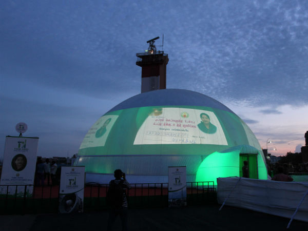 இதனை கடற்கரைக்கு வருபவர்கள் ஆர்வத்துடன் பார்வையிட்டு செல்கின்றனர். 10ம்தேதி வரை இந்த புரெஜக்டர் டூம் மெரினா கடற்கரையில் இருக்கும். அதற்கு பின்னர் 11 மற்றும் 12ம்தேதிகளில் சென்னை பெசன்ட் நகரில் உள்ள மீன் மார்க்கெட் அருகே மாற்றம் செய்யப்பட உள்ளது.