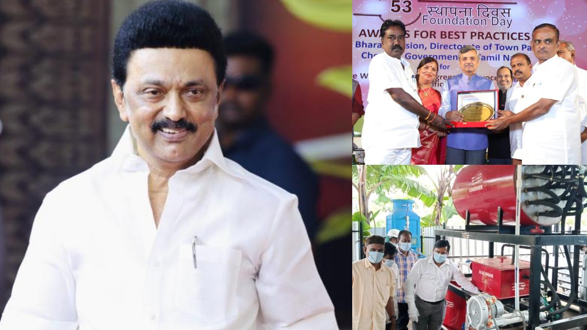 இந்த விருதினை கருங்குழி பேரூராட்சி தலைவர் கோ.தசரதனிடம் ஒன்றிய அமைச்சர் மனோஜ் ஜோஷி வழங்கி இருக்கிறார்.