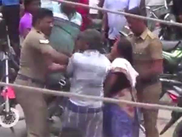 இதையடுத்து இருவரும் நகைக்கடை வெளியே வாய்த்தகராறில் ஈடுபட்டனர். அப்போது அந்த வழியாக சென்ற போலீஸார் நம்வாழ்வார், முருகன், விஜயகுமார் ஆகியோர் ராஜா மற்றும் அவரது மனைவியிடம், சண்டை குறித்து கேள்வி எழுப்பியுள்ளனர். அப்போது ராஜா இது எங்கள் குடும்பப் பிரச்சனை, நாங்கள் பார்த்துக் கொள்கிறோம். நீங்கள் செல்லுங்கள் என கூறியதாக தெரிகிறது.