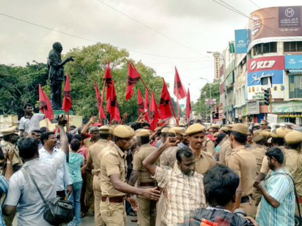 இதேபோல், காங்கிரஸாரும் தமிழக காங்கிரஸ் கமிட்டித் தலைவர் ஈவிகேஎஸ் இளங்கோவன் தலைமையில் சென்னையில் ஆர்ப்பாட்டத்தில் ஈடுபட்டனர். அப்போது தமிழகத்தில் பூரண மதுவிலக்கை அமல்படுத்தவும் அவர்கள் வலியுறுத்தினர்.