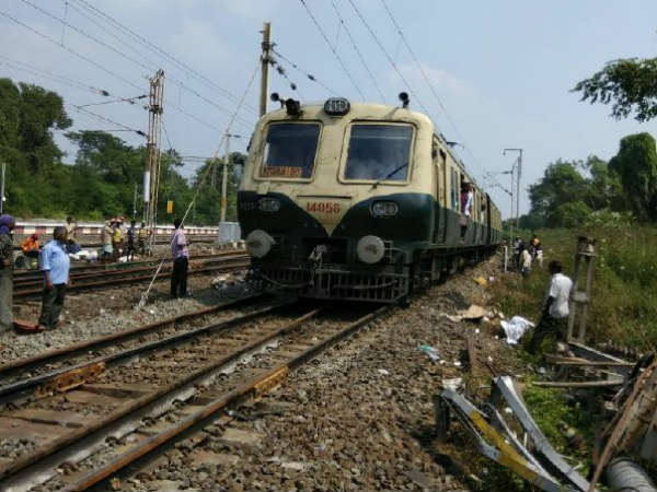 மின்சார ரயில் பெட்டிகள் தடம் புரண்ட நிலையில் புறநகர் ரயில் சேவைகள் 7 மணிநேரம் பாதிப்படைந்தன.