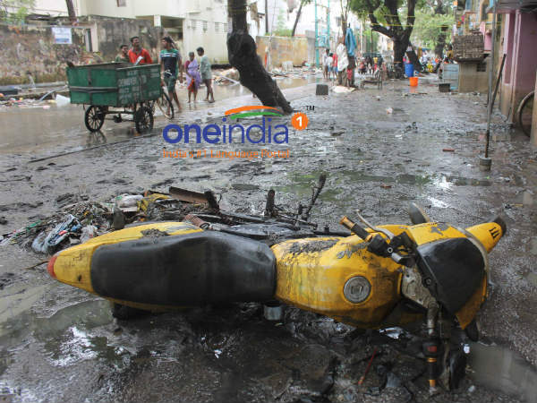 வெள்ளம் சூழ்ந்த கோட்டூர்புரத்தில் வெள்ளம் வடிந்த பின்னர் எஞ்சியிருப்பது சேறும் சகதியும், குப்பைகளும்தான். வீடுகளில் இருந்த அத்தியாவசியப் பொருட்கள் எல்லாம் வீதியில் இறைக்கப்பட்டிருக்கிறது. வாழ்வாதாரத்தை தொலைத்துவிட்டு தவிக்கிறார்கள் அங்கு வசித்தவர்கள்.