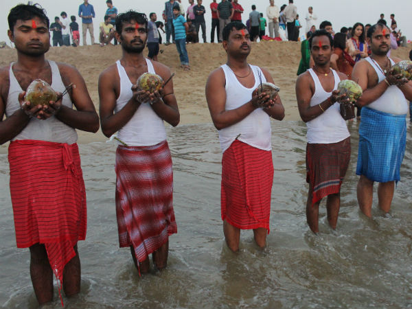 நீர் நிலைகளுக்குச் சென்று புனித நீராடி பின்னர் வழிபாடு நடத்துவர் பெண்கள். மேலும், சூரிய பகவானுக்கு இளநீர், பழங்கள், இனிப்புகளை படையல் இடுவர்.