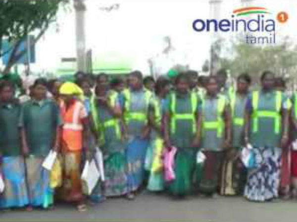 துப்புரவு பணியாளர்கள் போராட்டம் - வீடியோ