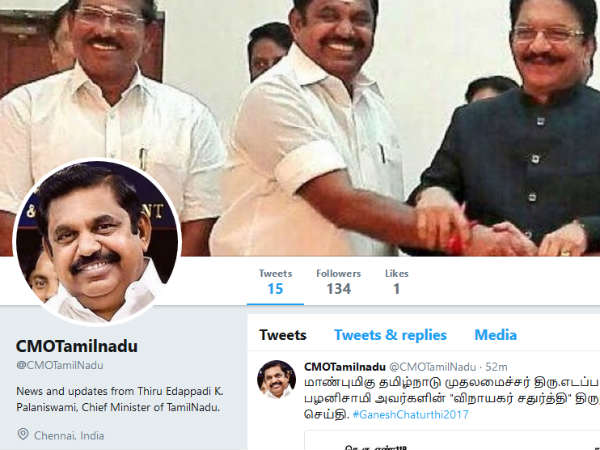 சென்னை: முதல்வர் எடப்பாடி பழனிச்சாமிக்கென தனி டிவிட்டர் அக்கவுண்ட் துவக்கப்பட்டு அரசு மற்றும் முதல்வரின் நடவடிக்கைகள், திட்டங்கள் உடனுக்குடன் அப்டேட் செய்யப்பட்டு வருகிறது.