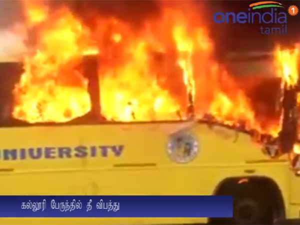 சென்னையில் கல்லூரி பேருந்து நடுரோட்டில் திடீரென தீப்பிடித்து எரிந்தது.... பதற வைக்கும் வீடியோ காட்சி