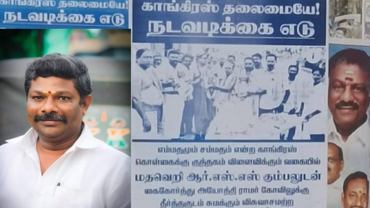 கும்பகோணம்: அயோத்தியில் கட்டப்பட்டு வரும் ராமர் கோயிலுக்குப் புனித நீர் அனுப்பும் நிகழ்ச்சியில் கலந்துகொண்ட கும்பகோணம் காங்கிரஸ் கட்சி மேயருக்கு கண்டனம் தெரிவித்து, கட்சி தலைமை அவர் மீது நடவடிக்கை எடுக்க வேண்டும் என வலியுறுத்தி, காங்கிரஸ் கட்சியினர் கும்பகோணம் முழுவதும் போஸ்டர் ஒட்டியுள்ளது பரபரப்பை ஏற்படுத்தியுள்ளது.