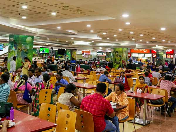 இந்த மாலில் உள்ள ஃபுட் கோர்ட்டில், கேஎப்சி, ஜூனியர் குப்பண்ணா, மெக்டொனால்ட், சப்வே, பிஸ்ஸா ஹட், சிறு காபி மற்றும் ஐஸ்க்ரீம் விற்பனை கடைகள் பல இயங்கி வந்தன.