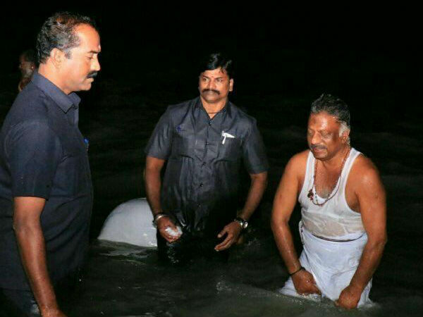 ராமேஸ்வரம் கடற்கரை அக்னி தீர்த்தத்தில் துணை முதல்வர் ஓ பன்னீர் செல்வம் புனித நீராடினார்.