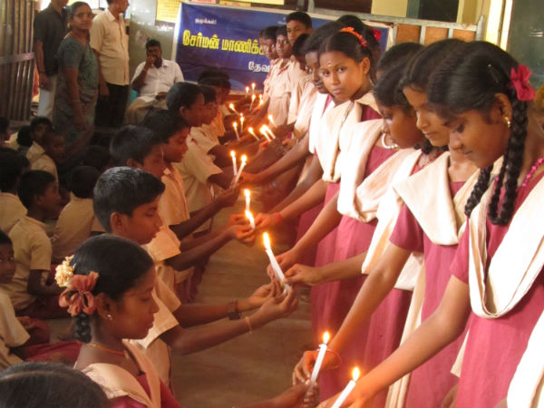 தீபங்கள் ஏற்றும்... தேவகோட்டையில் ஒளி ஏற்றி பிரியாவிடை பெற்ற மாணவர்கள்!