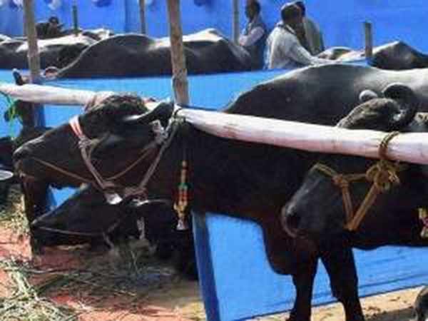 நீண்ட வாள் மற்றும் அரிவாளால் எருமை மாடுகளின் கழுத்தில் வெட்டப்பட்டன.