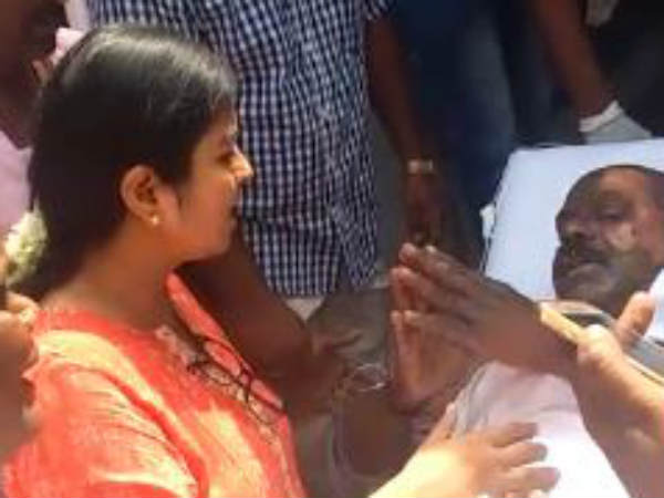 பெட்ரோல் குண்டு வீச்சில் காயமடைந்த பாண்டித்துரைக்கு தினகரன் மனைவி ஆறுதல்!